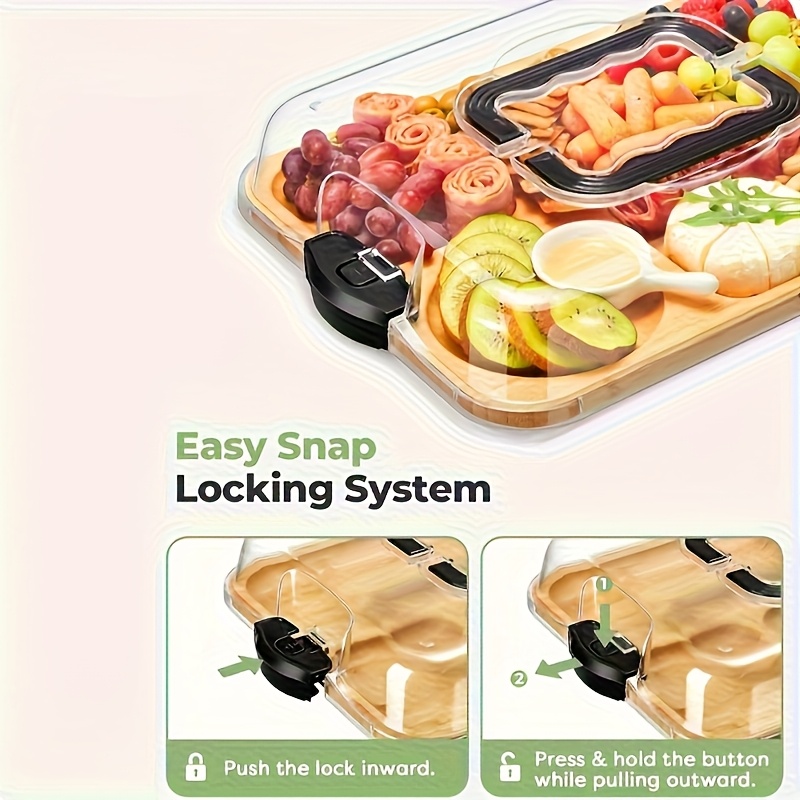 1pc Cheese Tray with Transparent Acrylic Cover | Portable Deli Platter for Camping, Parties, Restaurants | Ideal for Holiday Appetizers, Delicatessen and Snack Serving, Backs as Cutting Board, Party Snack Organizer, Safe Snap