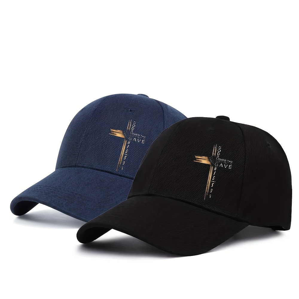 2pcs Cross Print Baseball Caps, Street Style, Adjustable Snapback, 20g/㎡ Polyester, Outdoor Sports Curved Brim Hats with Offset Printing Design, Casual Headwear|Minimalist Cap|Polyester