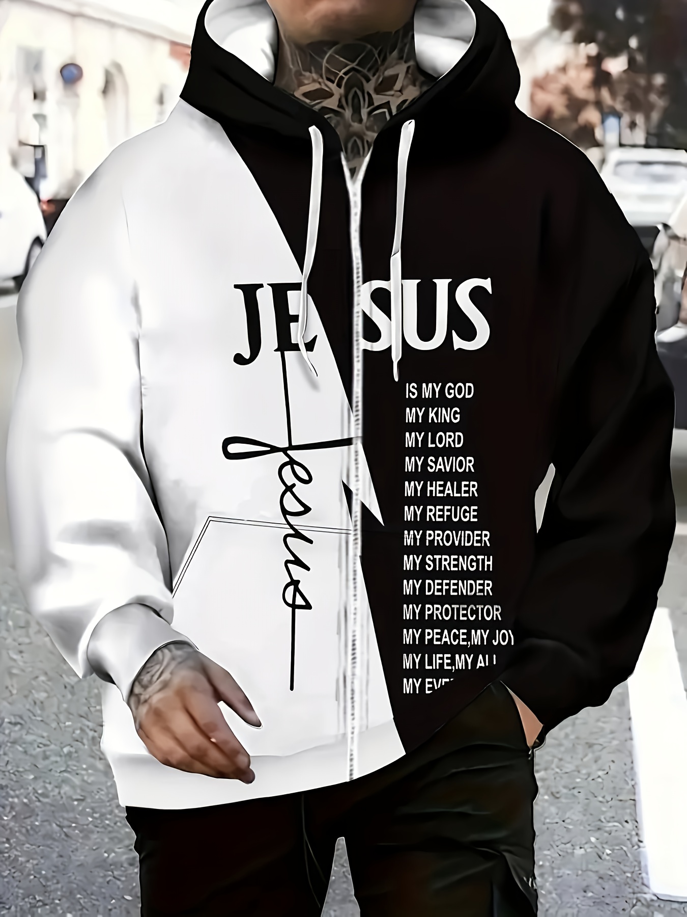 Christian Faith Zip-Up Hooded Sweatshirt with Jesus is My God & Bible Verse Back Print - Full-Zip Front Closure, Casual Church Wear, Men's & Women's Religious Apparel, Machine Washable Full-Zip Hoodie for Everyday Faith Expre