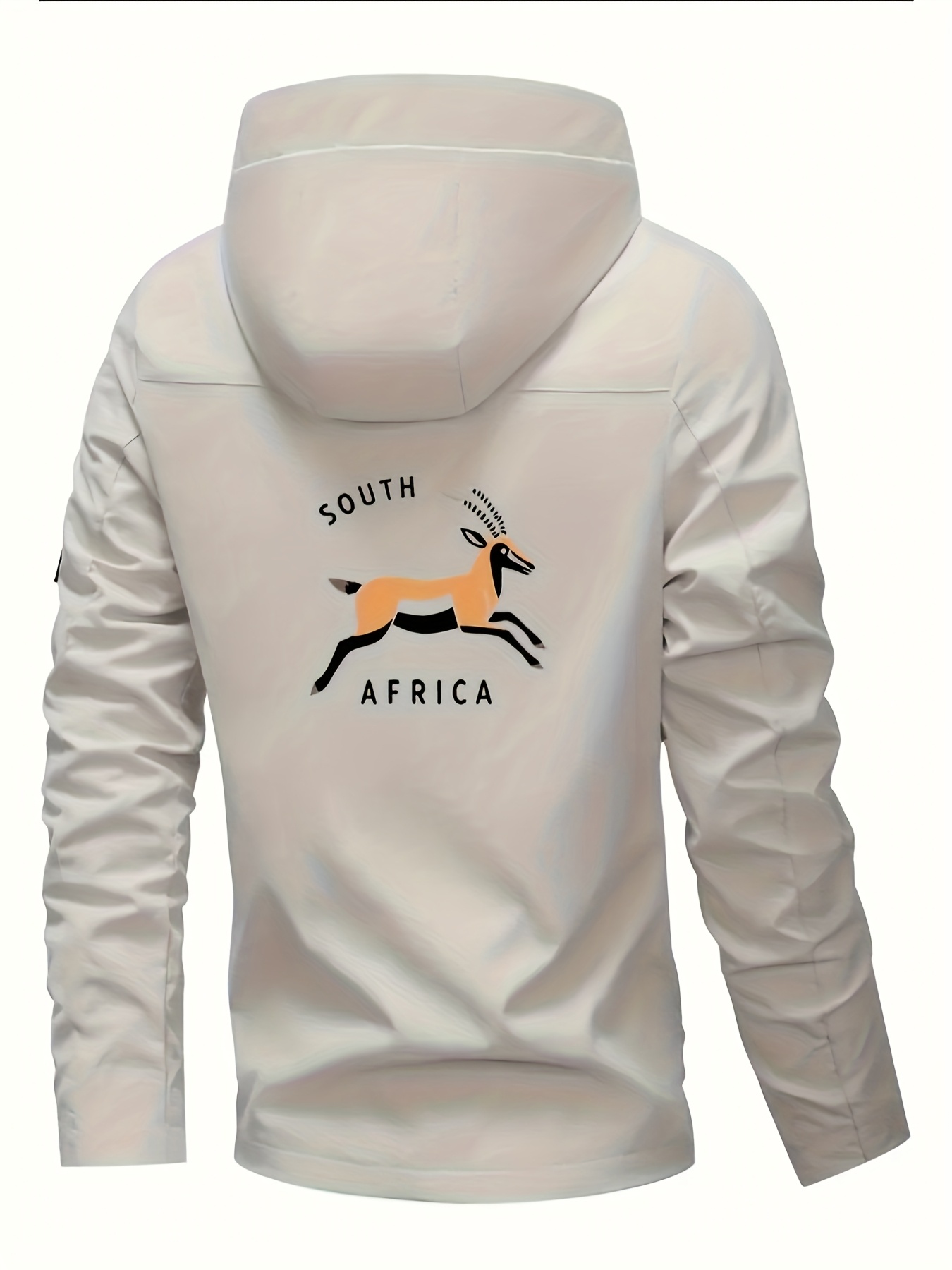 [Lightweight Hooded Jacket] Men's Lightweight Hooded Jacket - Beige Zip-Up Coat with Drawstring Hood, Non-Stretch Fabric for Formal & Casual Outfits - Everyday & Special Events - Model 932, South African Men' Rugby Jacket, Af