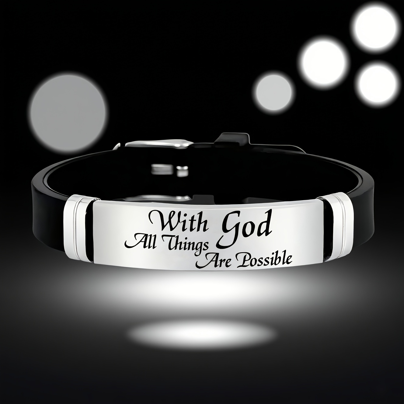 Stainless Steel Silicone Bracelet, Personal Faith Accessory, Elegant Font Design, 'With You, Anything is Possible', 202